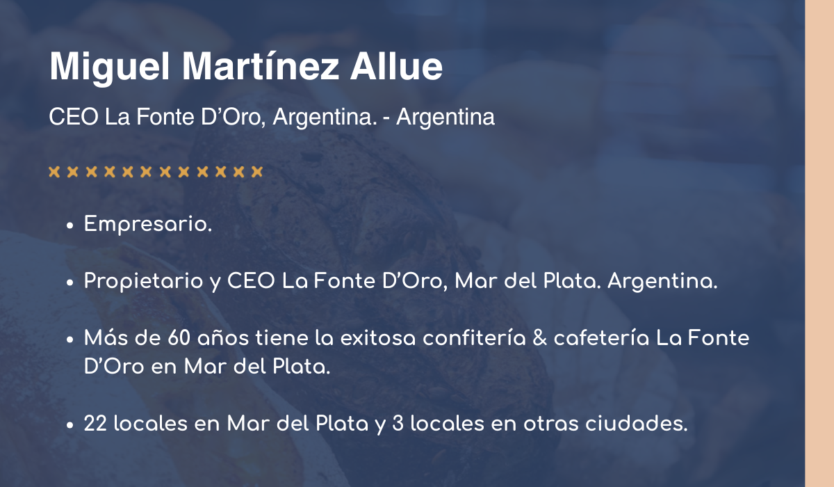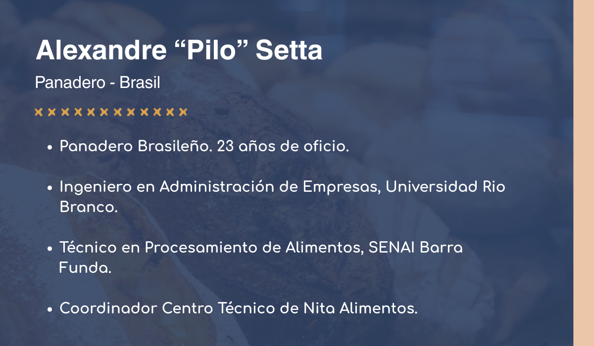 Panadero y pastelero profesional suizo. Estudios en la famosa escuela Richemont, Suiza. Amplia experiencia en Suiza y Chile en cargos técnicos y operativos. Asesor, consultor y conferencista. Embajador de marca RedBakery.